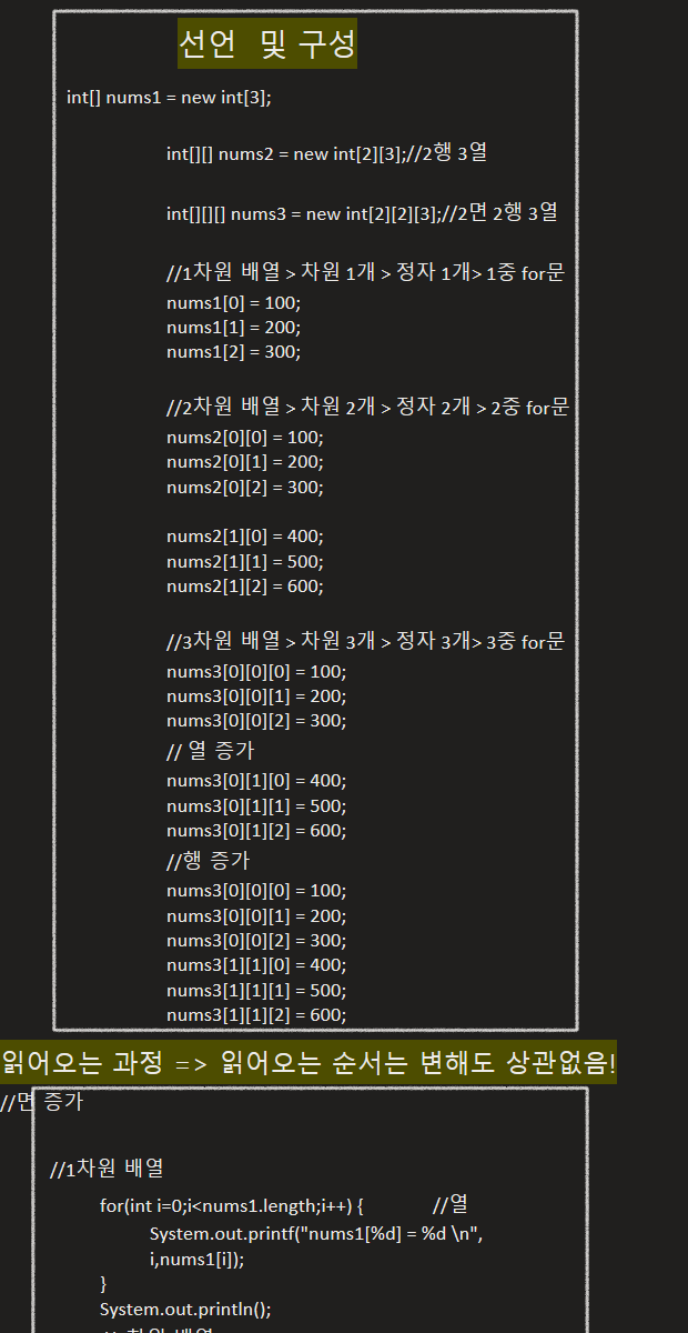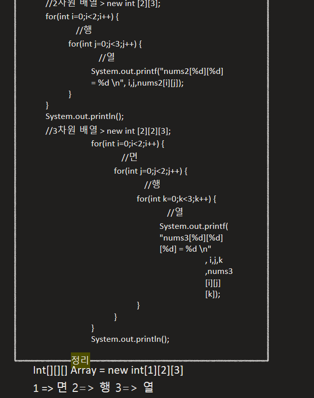 3차원 배열 은 java에서 잘 사용하지 않음..
